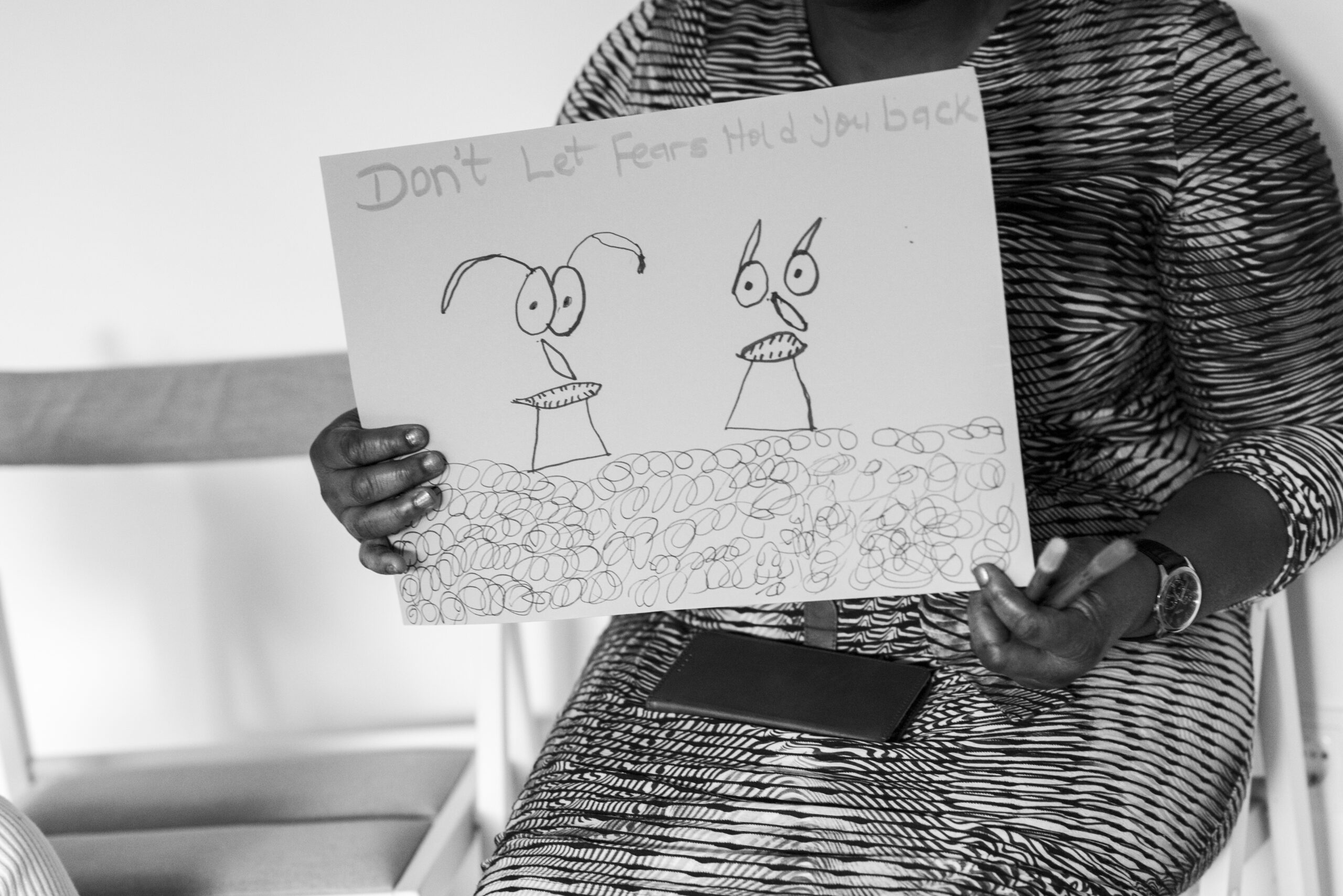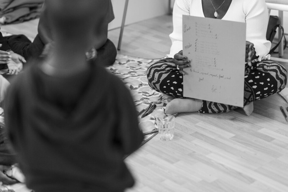 Nach einer kurzen Kennenlernphase und spielerischen Aufwärmübungen begaben sich Mütter und Kinder in einen kreativen Prozess aus Zeichnen, Schreiben und poetischem Gestalten. Es ging nicht darum, „gut“ zu sein – sondern darum, sich auszudrücken.